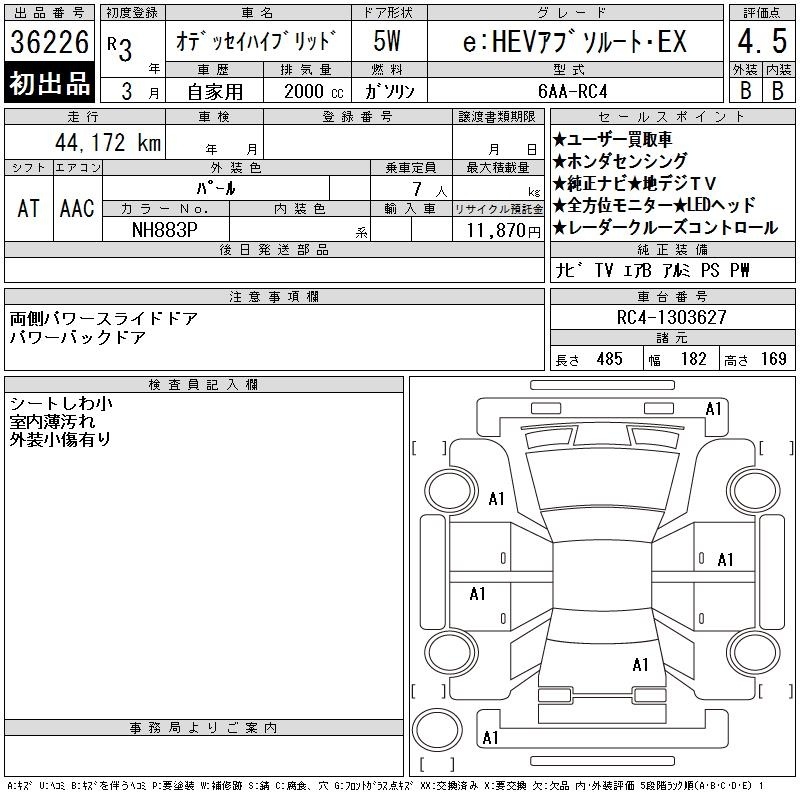 HONDA ODYSSEY HYBRID - лот 36226