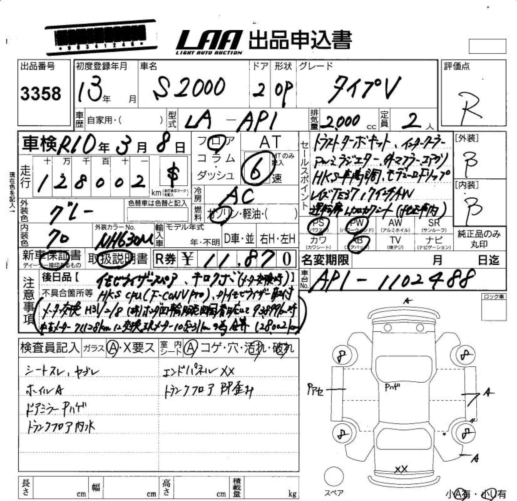 HONDA S2000 - лот 3358