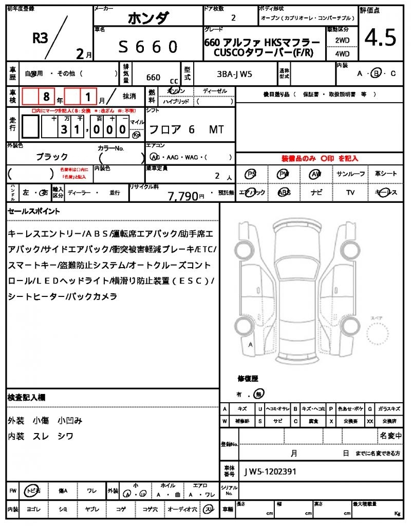 HONDA S660 - лот 9588