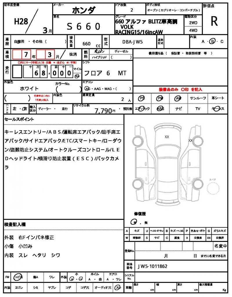 HONDA S660 - лот 9609