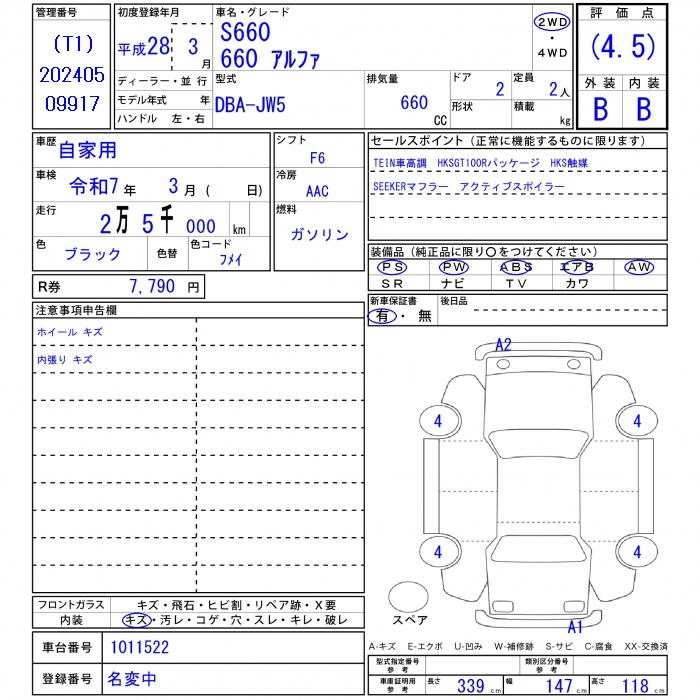 HONDA S660 - лот 21967