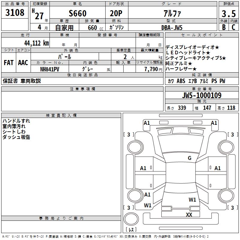 HONDA S660 - лот 3108