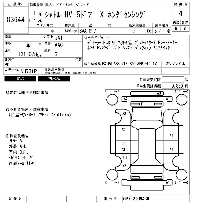 HONDA SHUTTLE X HONDA SENSING - лот 3644