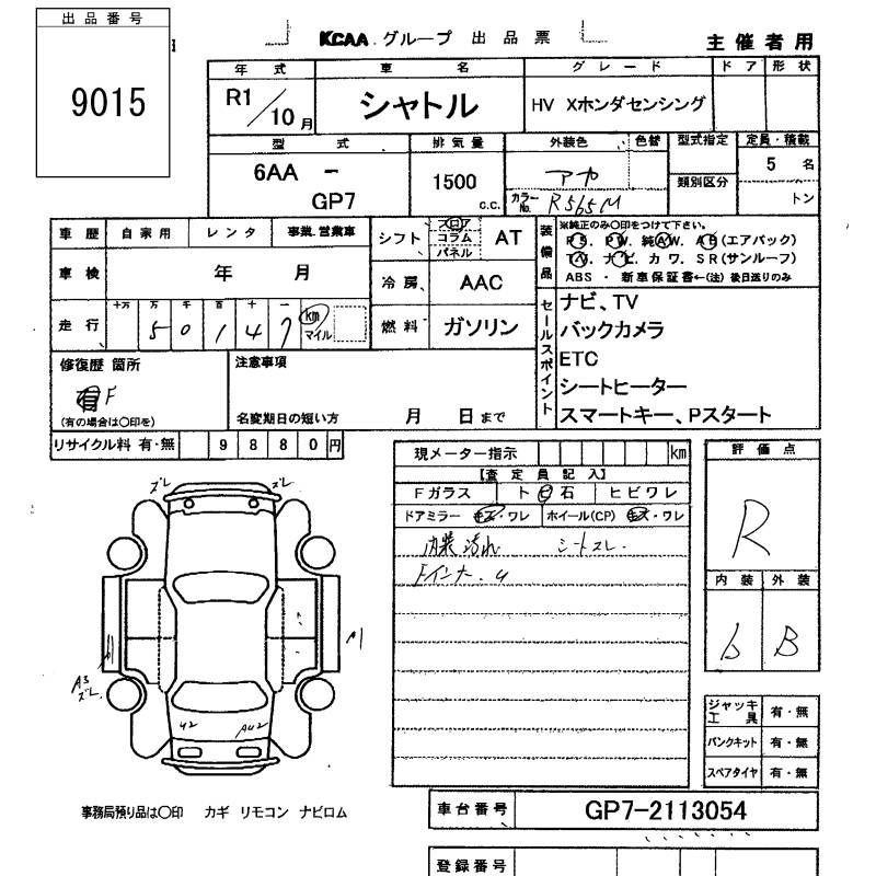 HONDA SHUTTLE HYBRID X HONDA SENSING - лот 9015