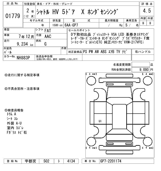 HONDA SHUTTLE X HONDA SENSING - лот 1779