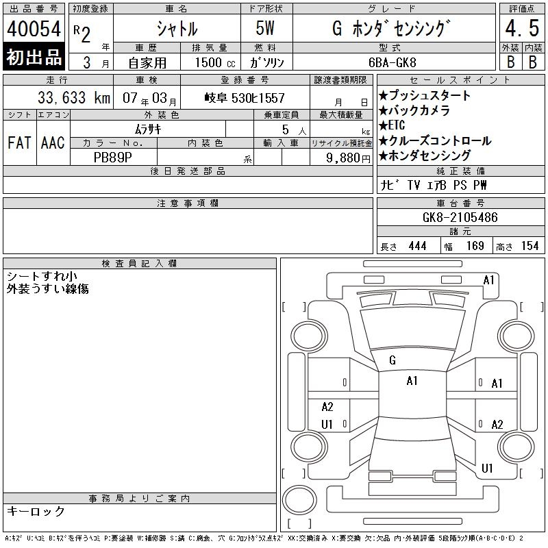 HONDA SHUTTLE G HONDA SENSING - лот 40054