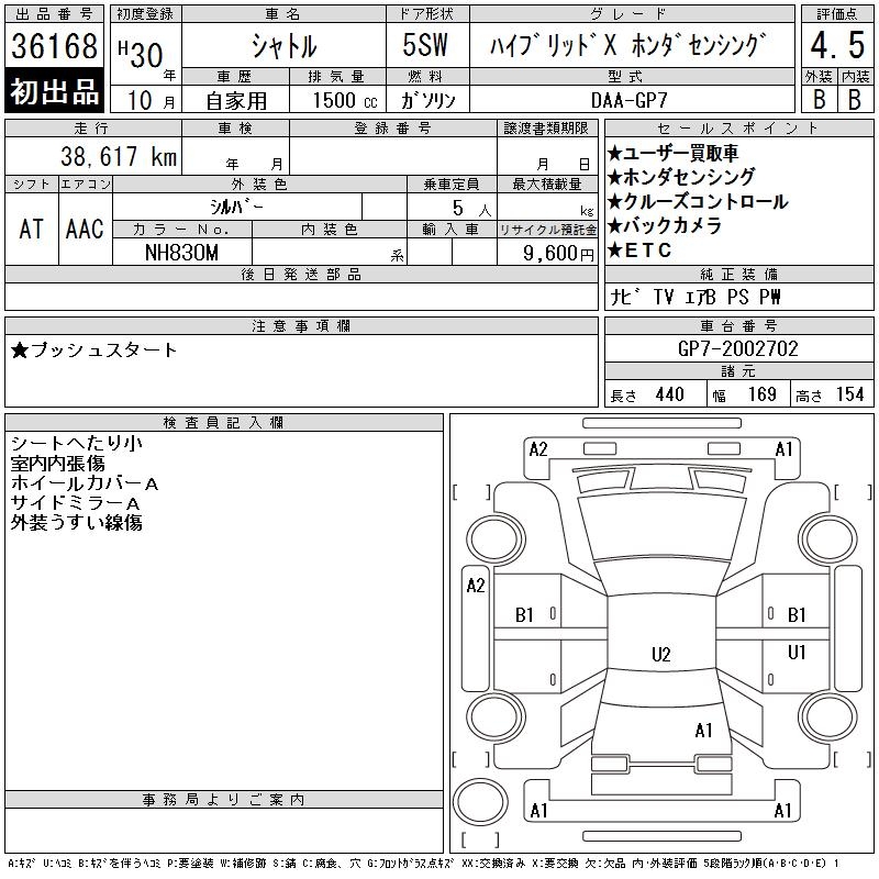 HONDA SHUTTLE HYBRID X HONDA SENSING - лот 36168