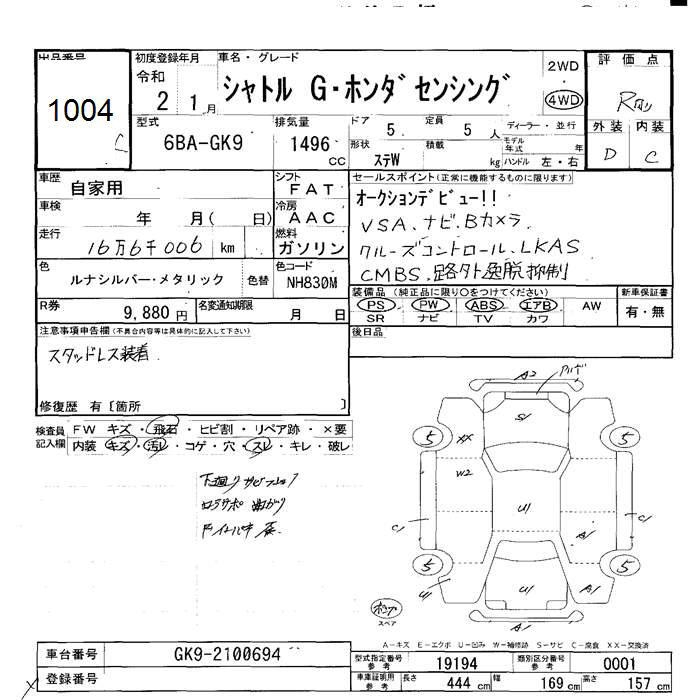HONDA SHUTTLE 4WD G HONDA SENSING - лот 1004