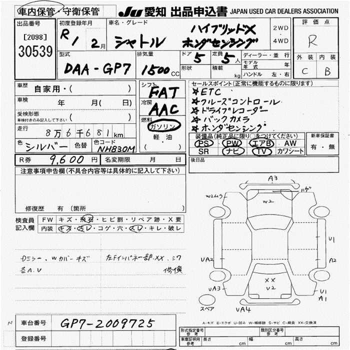 HONDA SHUTTLE HYBRID X HONDA SENSING - лот 30539