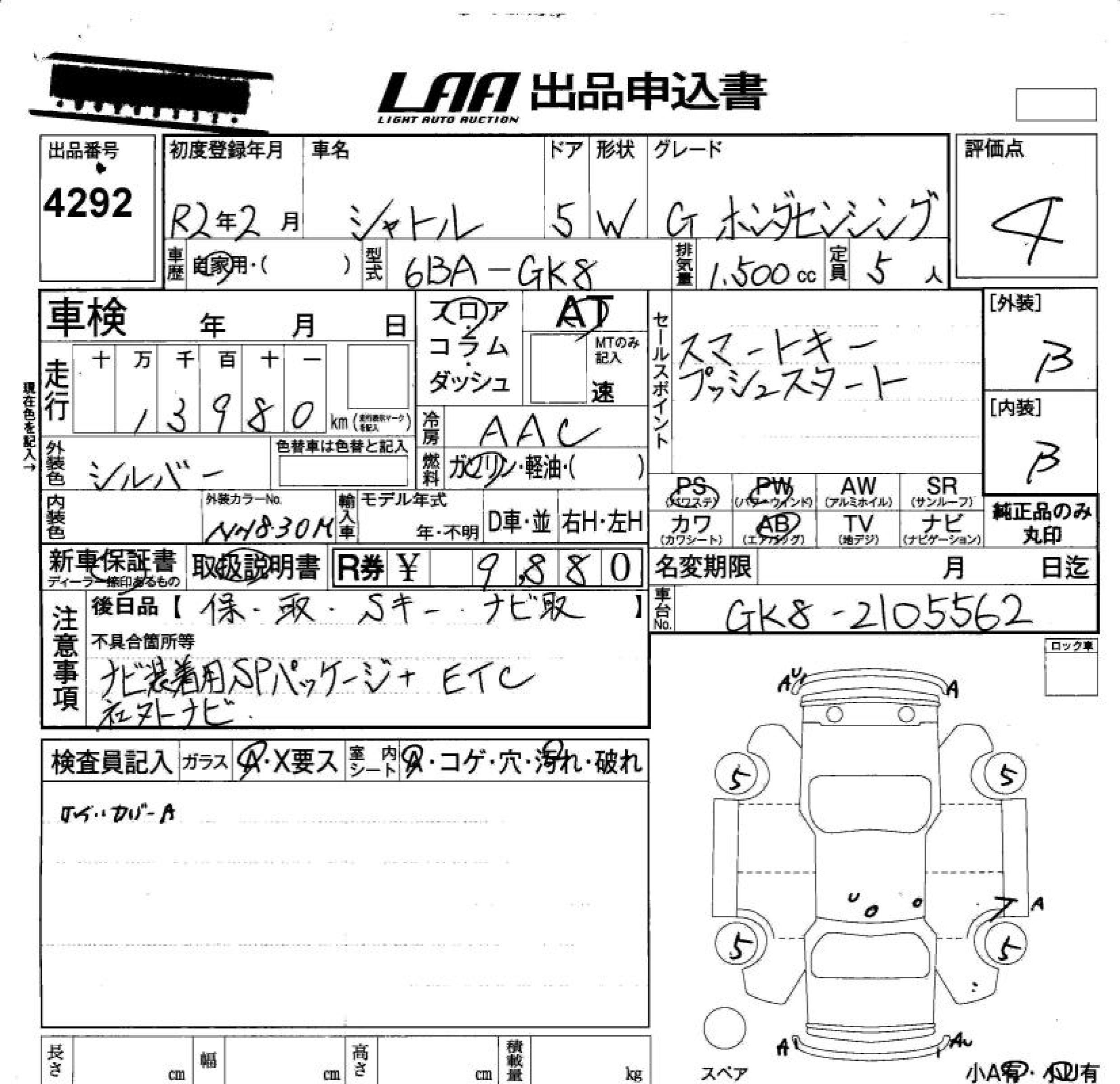 HONDA SHUTTLE G HONDA SENSING - лот 4292