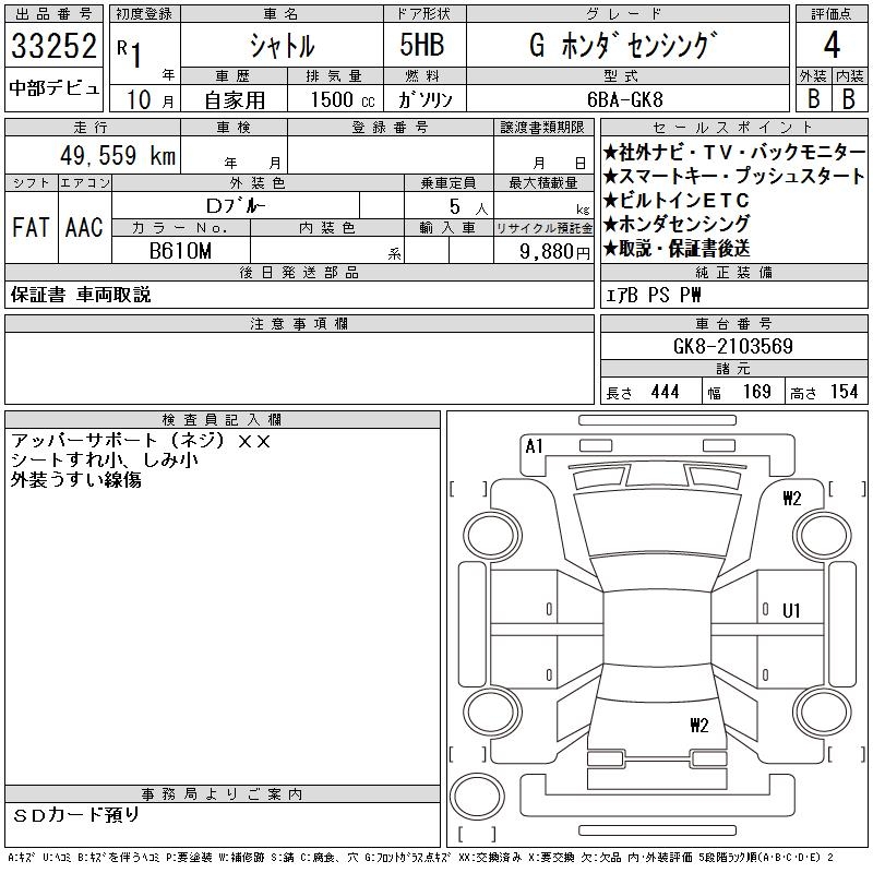 HONDA SHUTTLE G HONDA SENSING - лот 33252