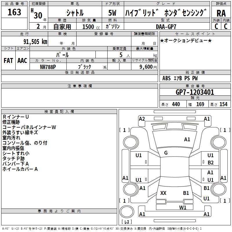 HONDA SHUTTLE HYBRID HONDA SENSING - лот 163