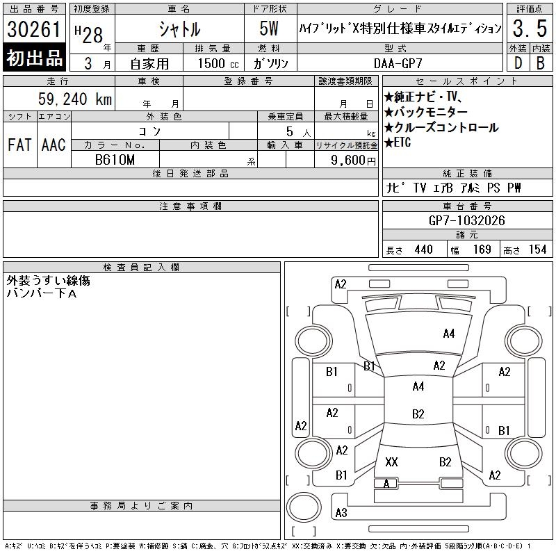 HONDA SHUTTLE HYBRID X STYLE EDITION - лот 30261