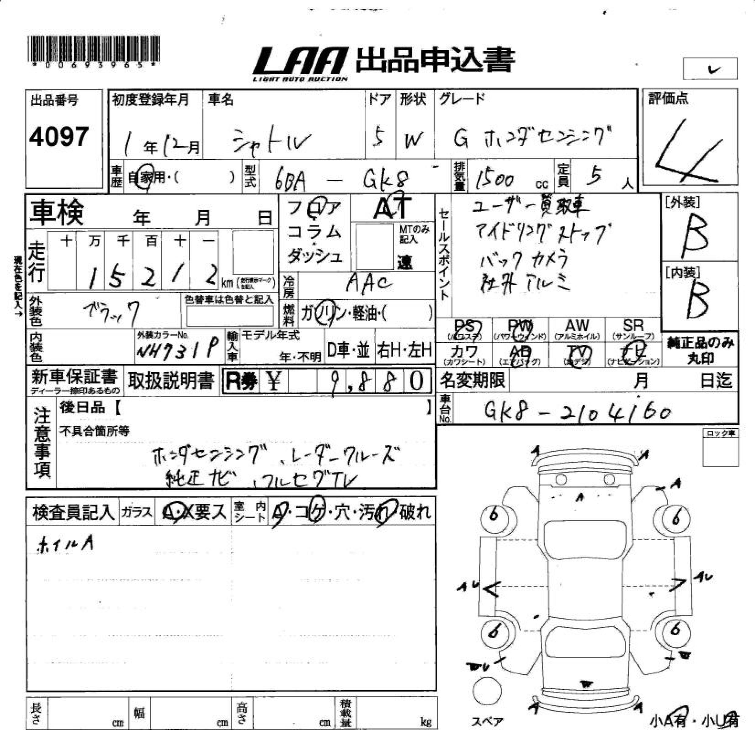 HONDA SHUTTLE G HONDA SENSING - лот 4097