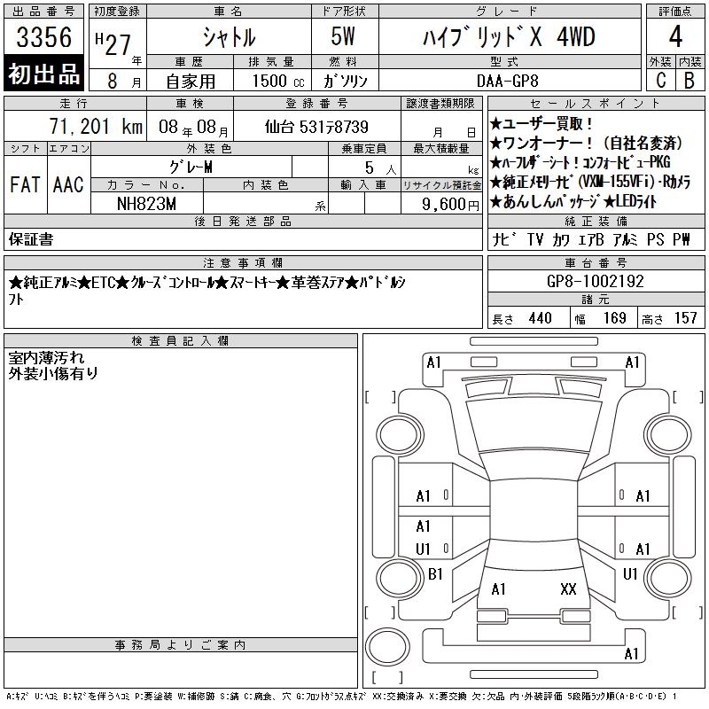 HONDA SHUTTLE HYBRID X 4WD - лот 3356