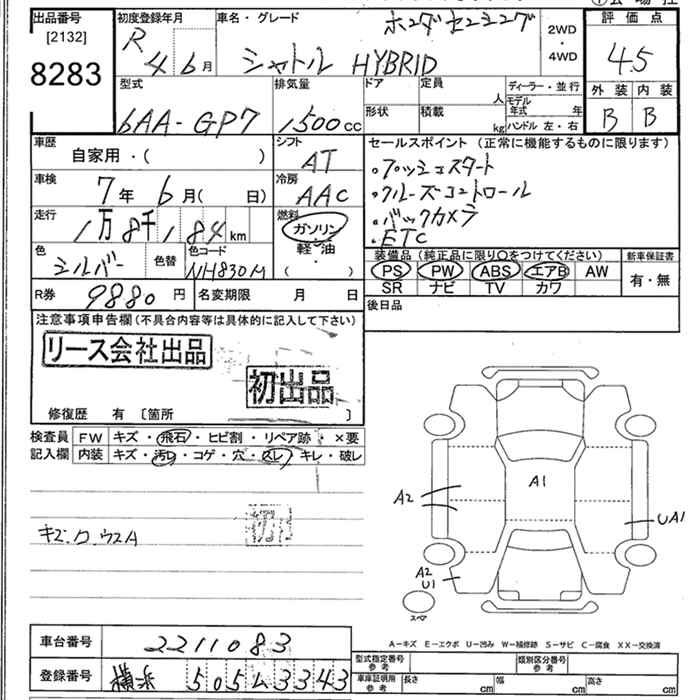 HONDA SHUTTLE HYBRID HONDA SENSING - лот 8283
