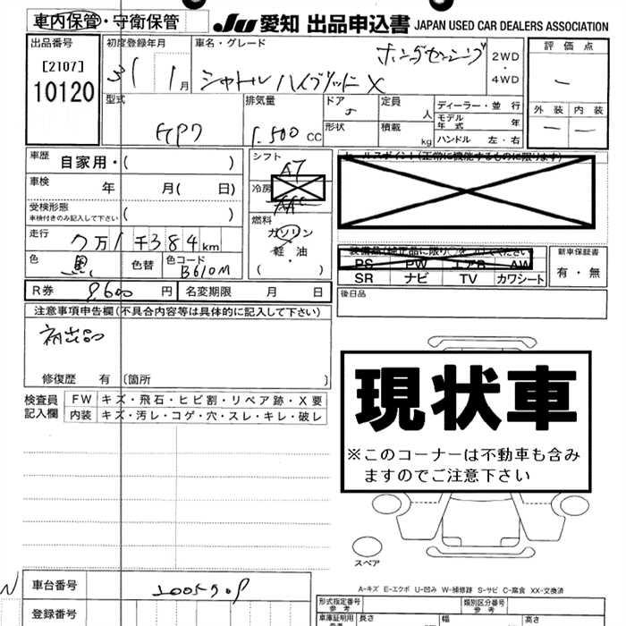 HONDA SHUTTLE HYBRID X HONDA SENSING - лот 10120