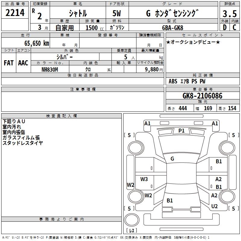 HONDA SHUTTLE G HONDA SENSING - лот 2214