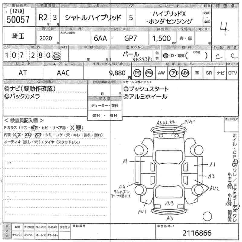 HONDA SHUTTLE HYBRID X* HONDA SENSING - лот 50057