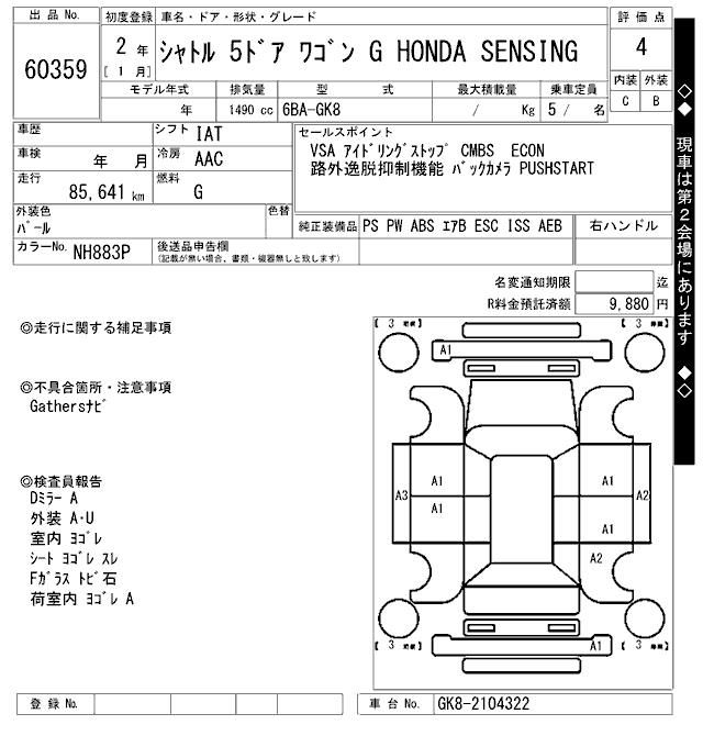 HONDA SHUTTLE G HONDA SENSING - лот 60359