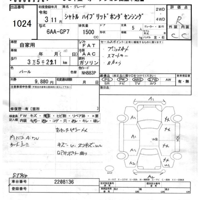 HONDA SHUTTLE HYBRID HONDA SENSING - лот 1024