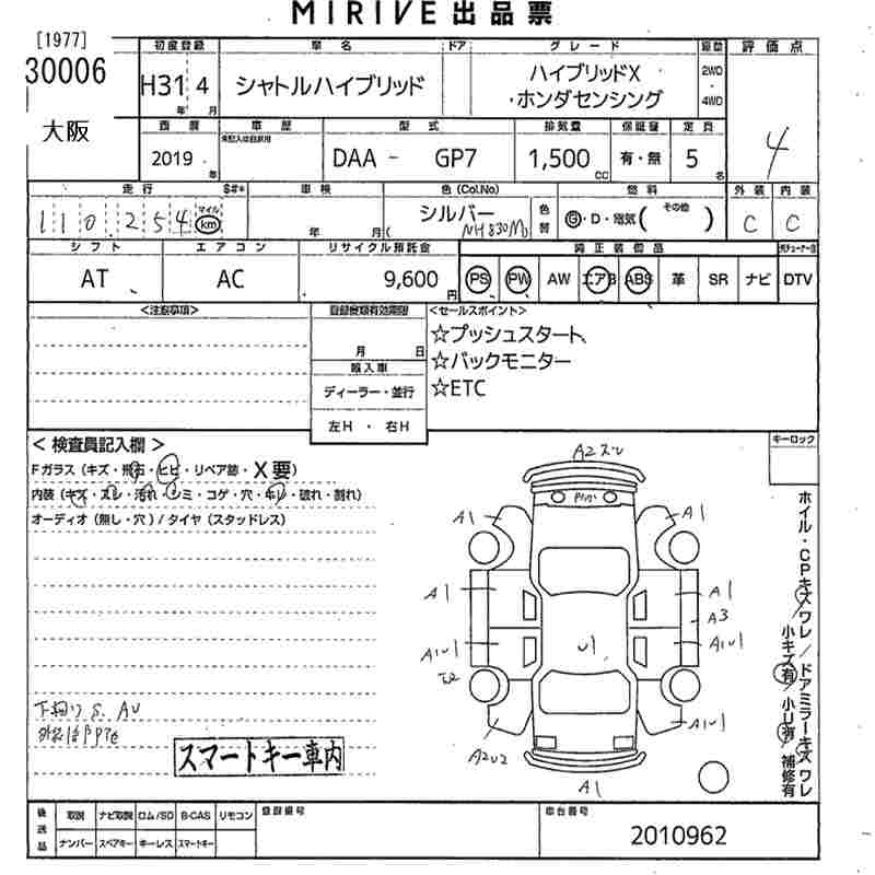 HONDA SHUTTLE HYBRID X* HONDA SENSING - лот 30006
