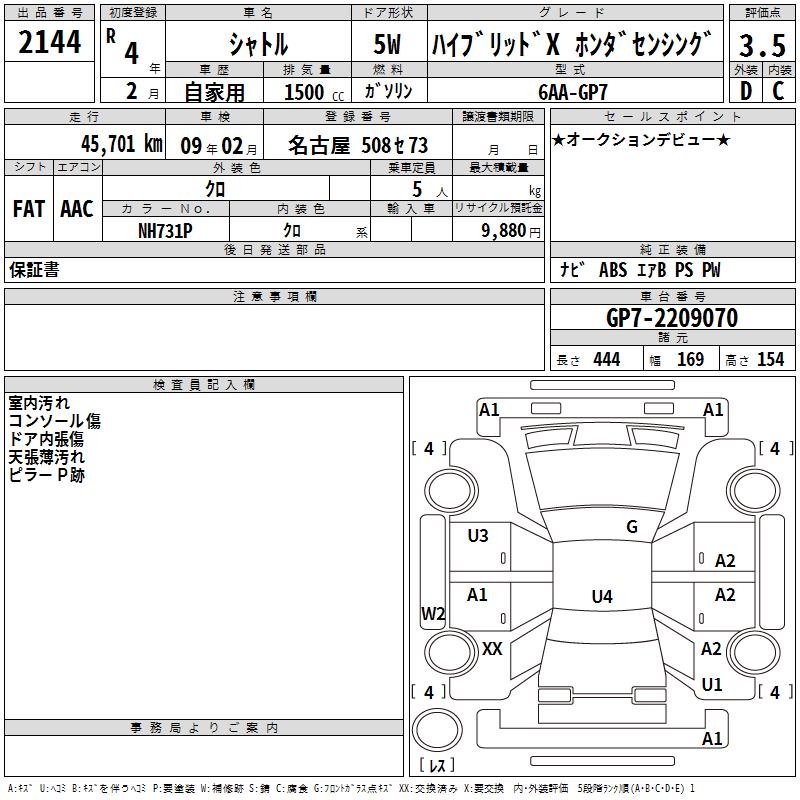 HONDA SHUTTLE HYBRID X HONDA SENSING - лот 2144