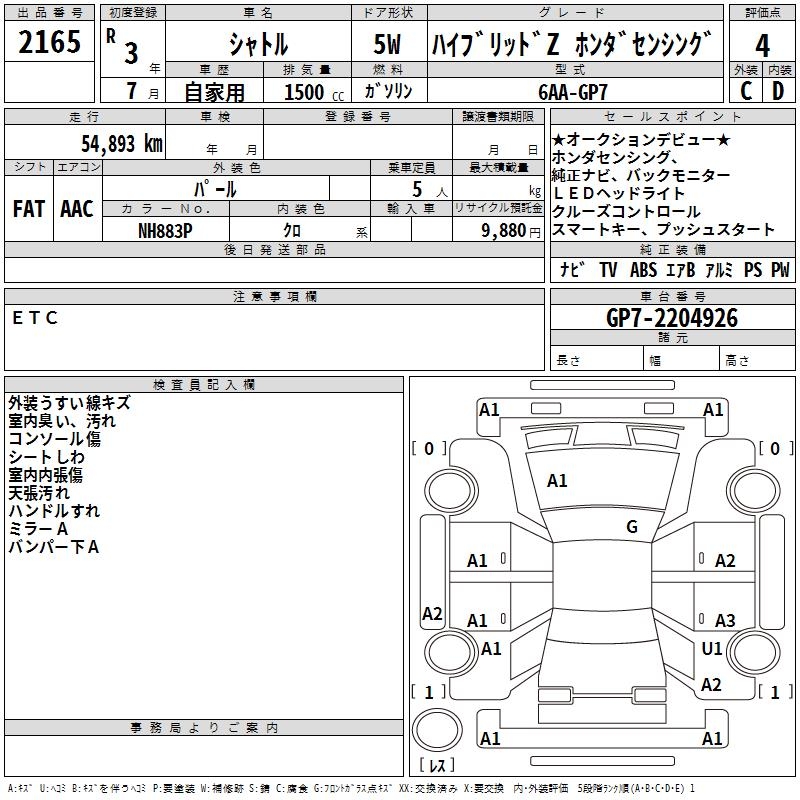 HONDA SHUTTLE HYBRID Z HONDA SENSING - лот 2165