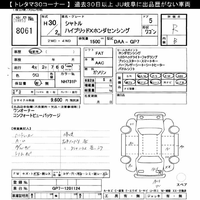 HONDA SHUTTLE HYBRID X HONDA SENSING - лот 8061