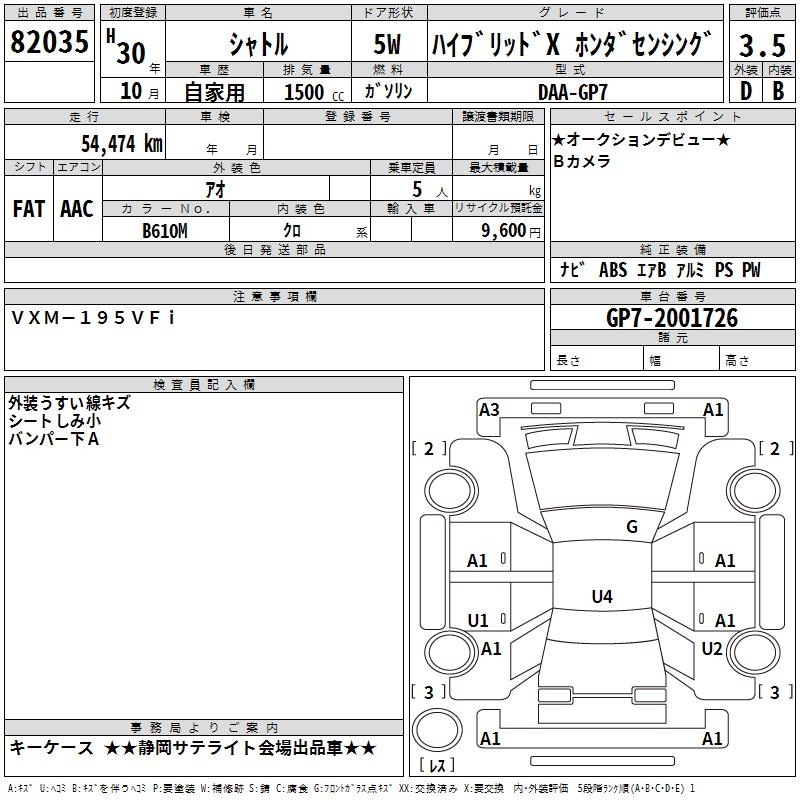 HONDA SHUTTLE HYBRID X HONDA SENSING - лот 82035