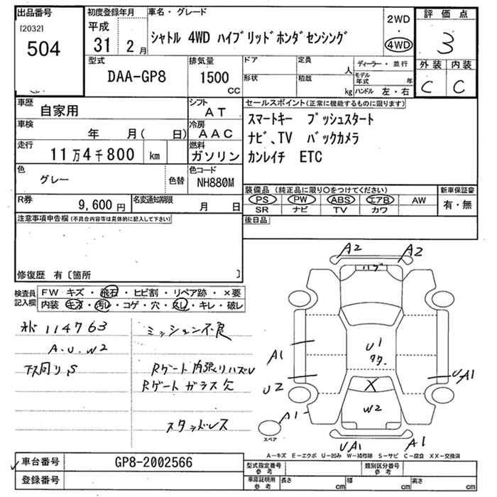 HONDA SHUTTLE 4WD HYBRID HONDA SENSING - лот 504