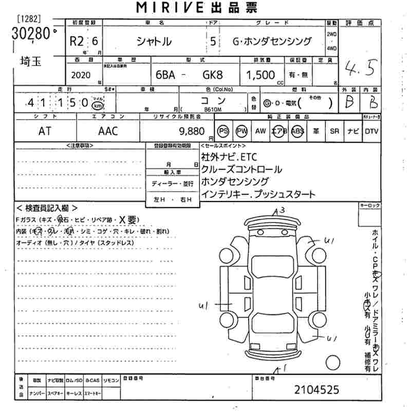 HONDA SHUTTLE G* HONDA SENSING - лот 30280