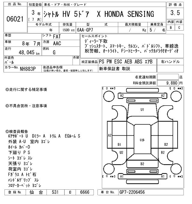 HONDA SHUTTLE X HONDA SENSING - лот 6021