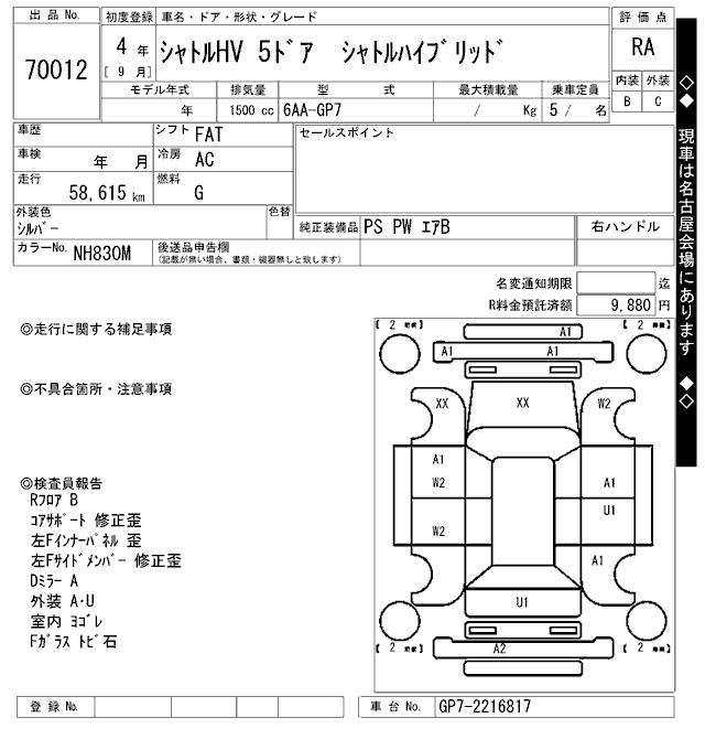 HONDA SHUTTLE SHUTTLE HYBRID - лот 70012