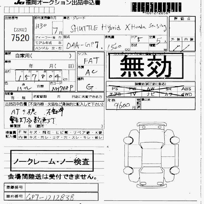 HONDA SHUTTLE HYBRID X HONDA SENSING - лот 7520