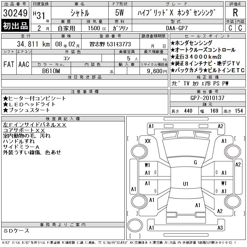 HONDA SHUTTLE HYBRID X HONDA SENSING - лот 30249