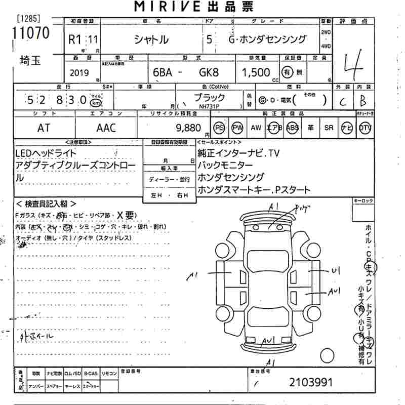 HONDA SHUTTLE G* HONDA SENSING - лот 11070