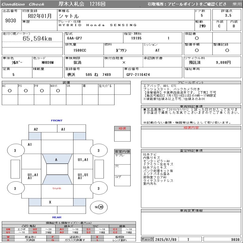 HONDA SHUTTLE HYBRID Honda SENSING - лот 9030