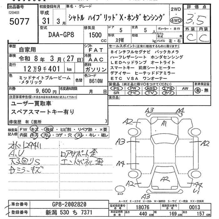 HONDA SHUTTLE 4WD HYBRID X HONDA SENSING - лот 5077
