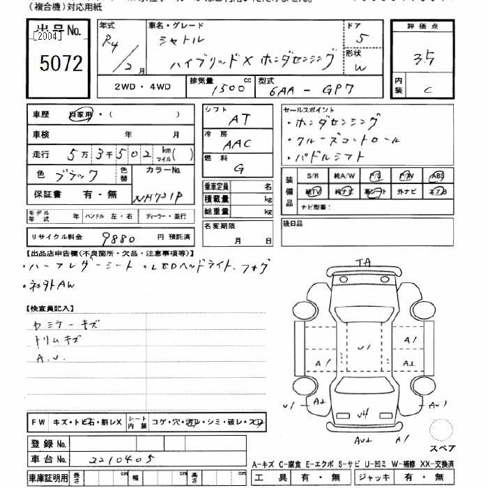 HONDA SHUTTLE HYBRID X HONDA SENSING - лот 5072
