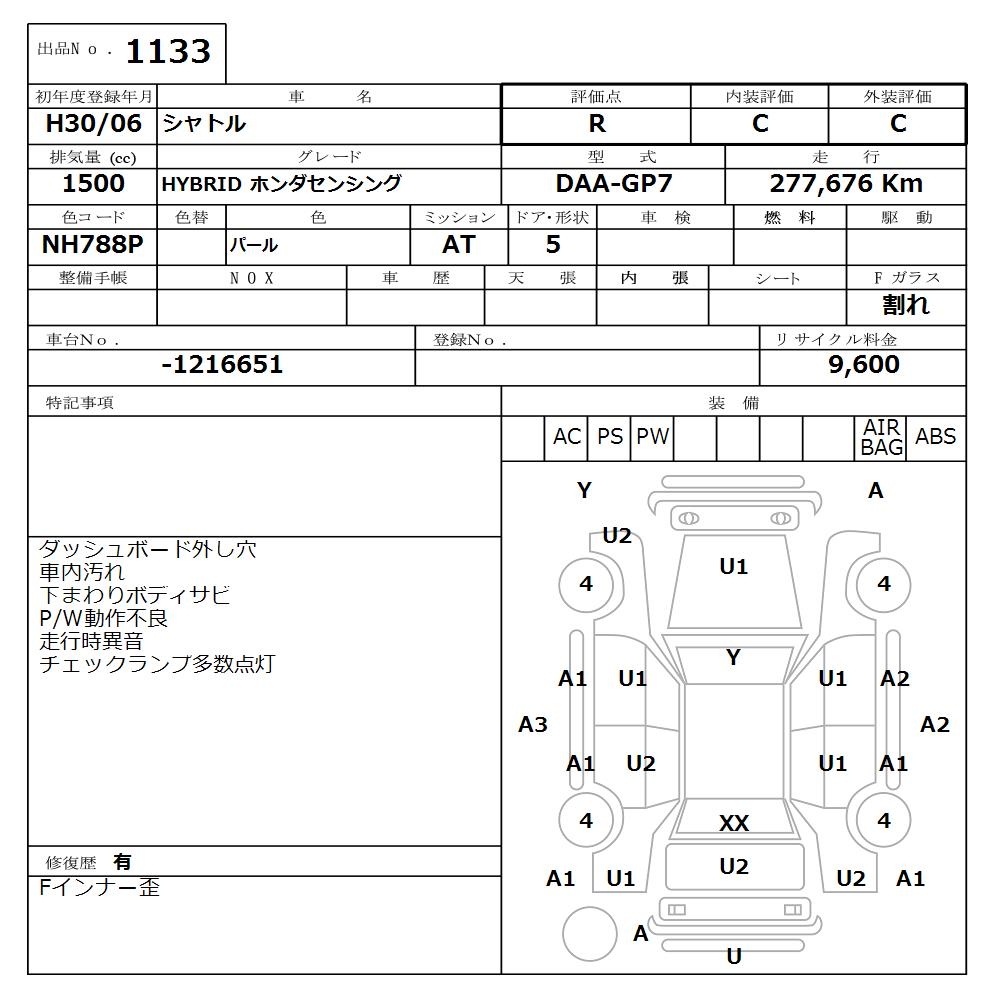 HONDA SHUTTLE HYBRID HONDA SENSING - лот 1133