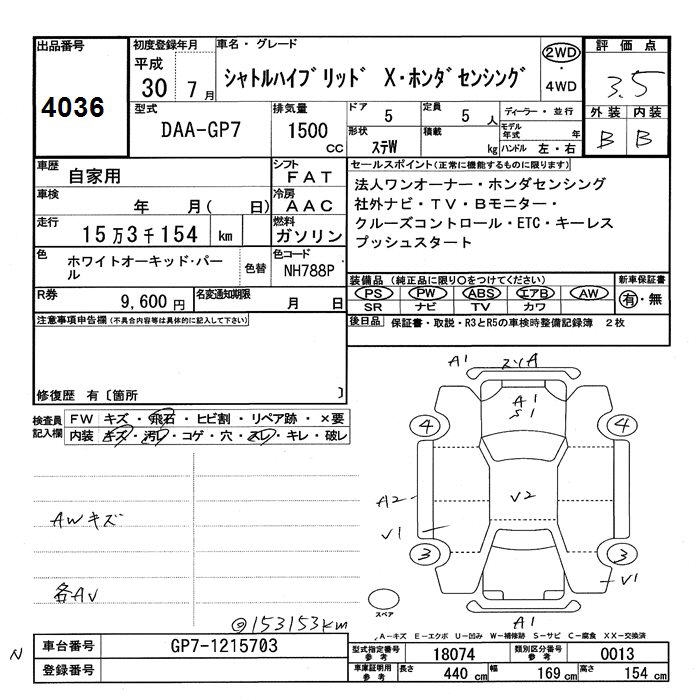 HONDA SHUTTLE HYBRID X HONDA SENSING - лот 4036