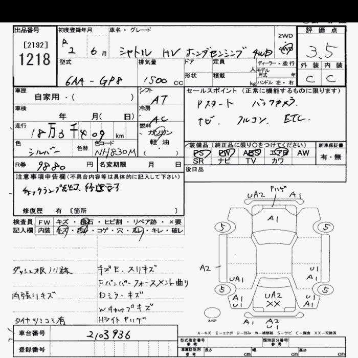 HONDA SHUTTLE 4WD HYBRID HONDA SENSING - лот 1218