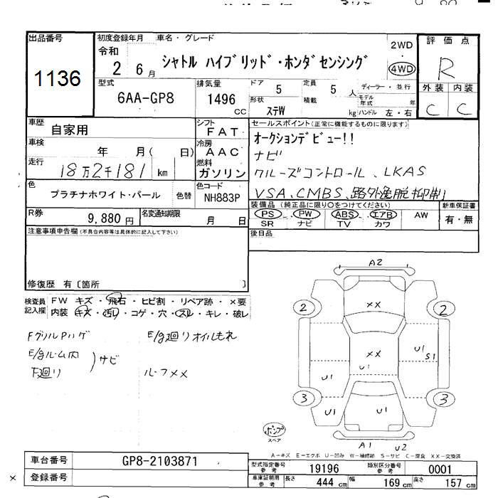 HONDA SHUTTLE 4WD HYBRID HONDA SENSING - лот 1136