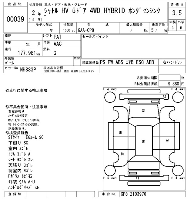 HONDA SHUTTLE HYBRID HONDA SENSING - лот 39