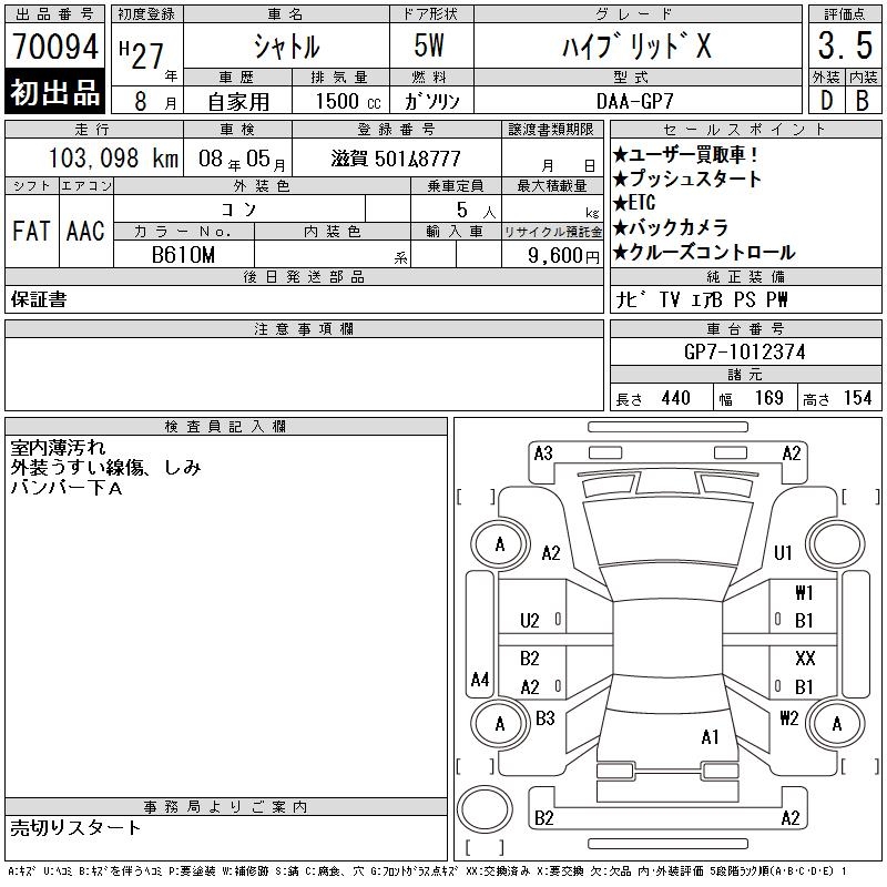 HONDA SHUTTLE HYBRID X - лот 70094
