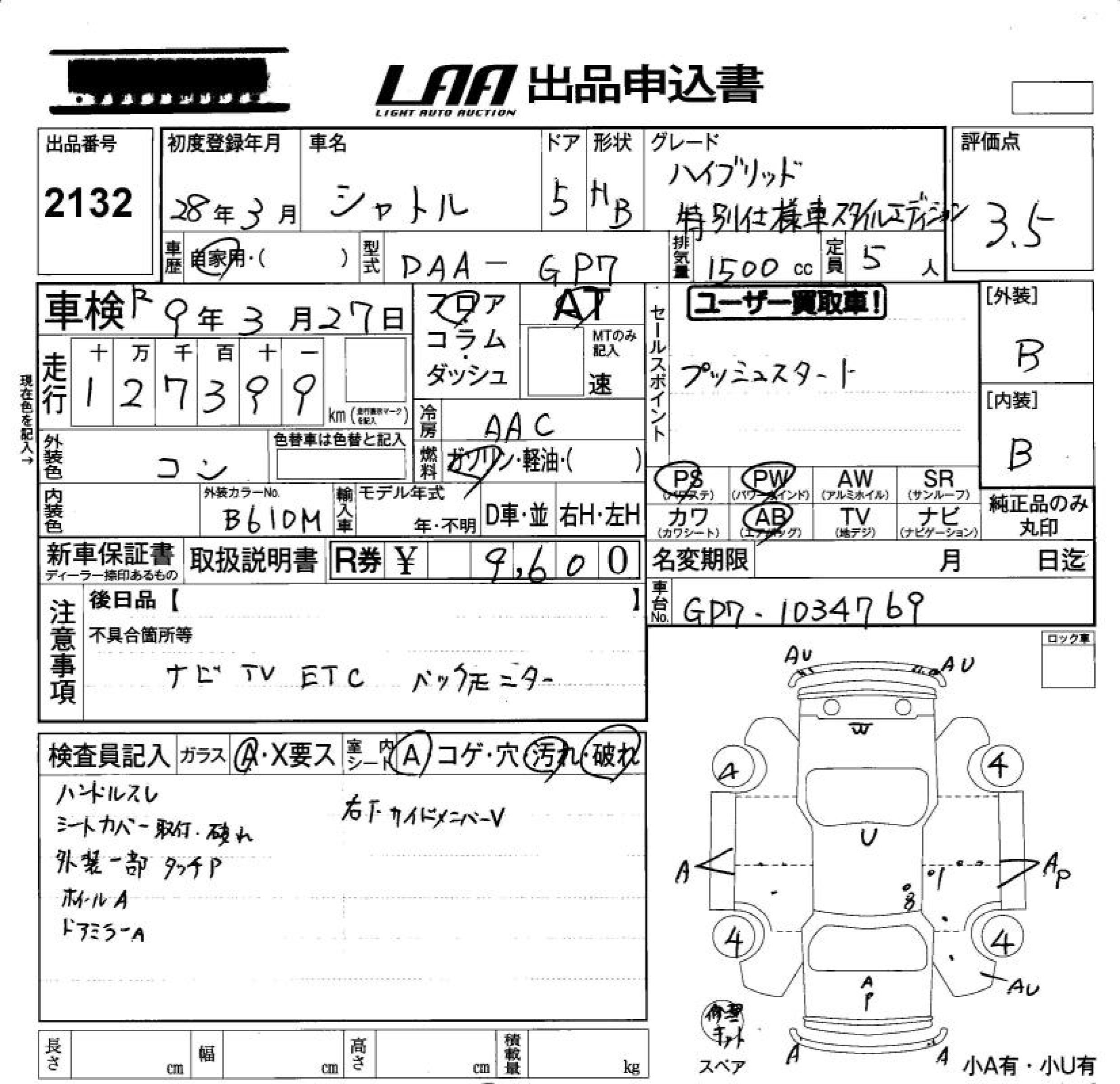 HONDA SHUTTLE HYBRID SPECIAL EDITION STYLE - лот 2132