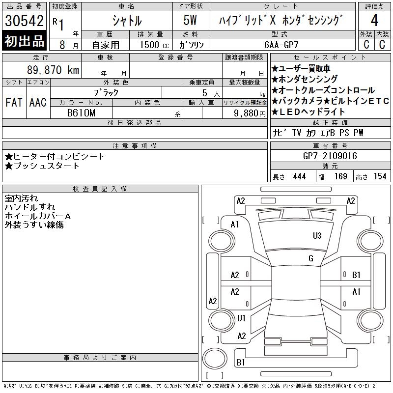 HONDA SHUTTLE HYBRID X HONDA SENSING - лот 30542