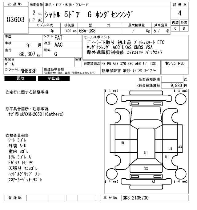 HONDA SHUTTLE G HONDA SENSING - лот 3603