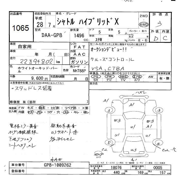HONDA SHUTTLE 4WD HYBRID X - лот 1065